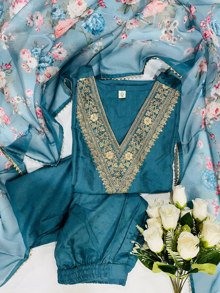 SakhiTrends Women Embroidery Kurta With Viscose Rayon Pant With Teby Dupatta